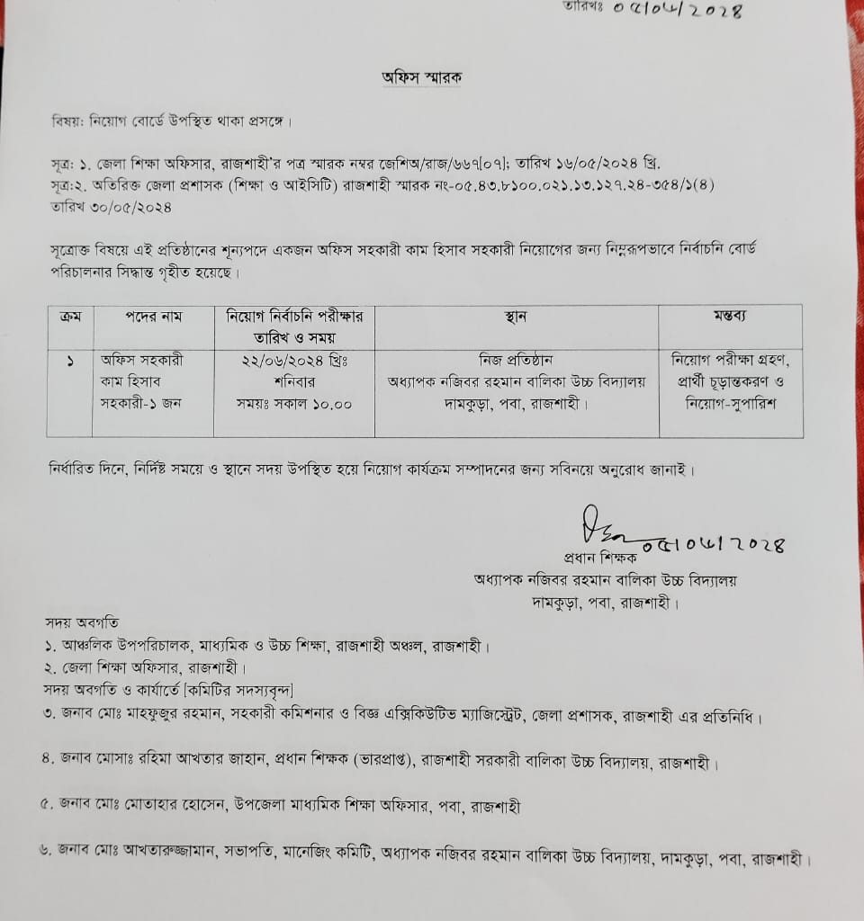 ***নিয়োগ বোর্ডে উপস্থিত থাকা প্রসঙ্গে***